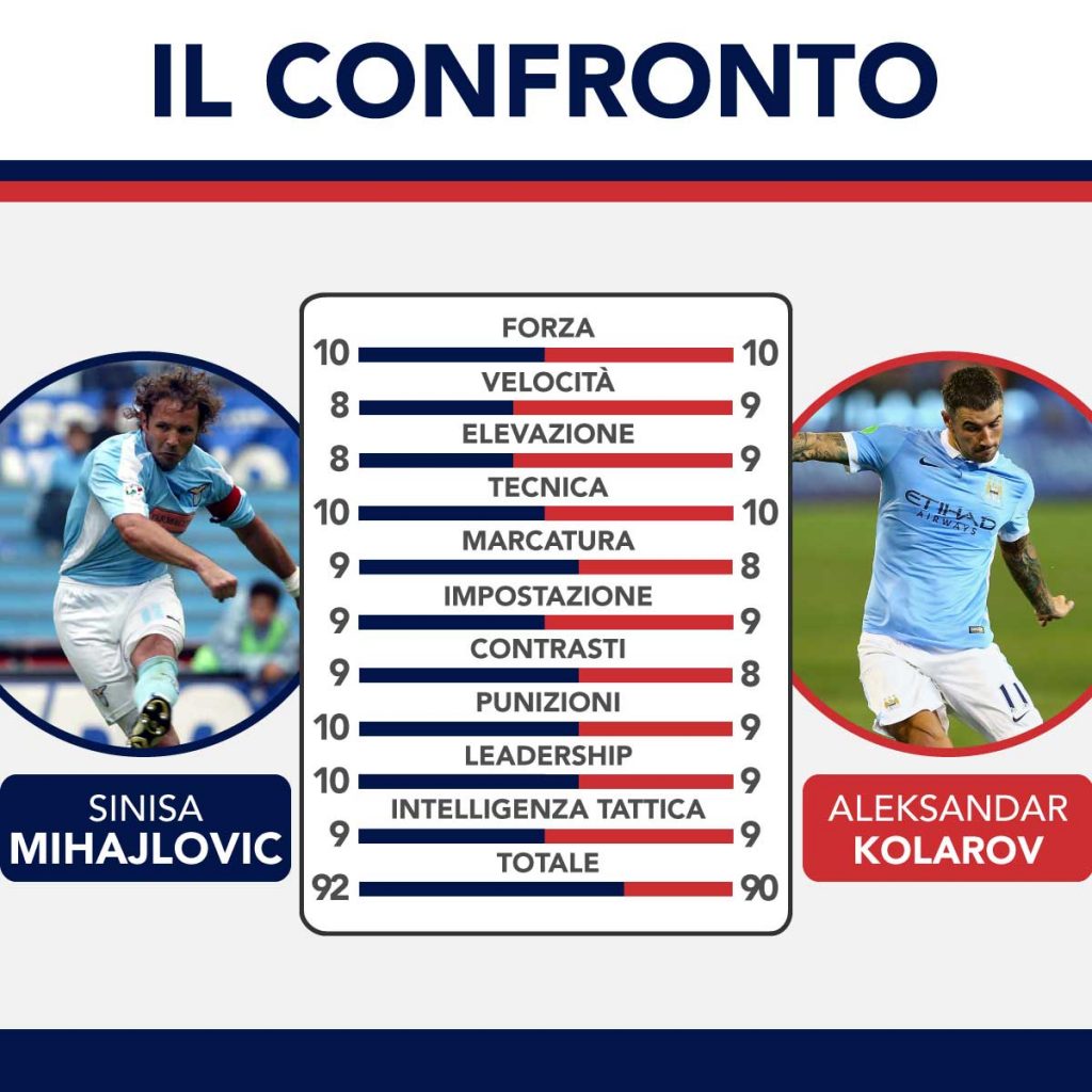 Le strade di Mihajlovic e Kolarov si sono incrociate infatti nel biennio 2012/2013, quando Sinisa aveva assunto il ruolo di commissario tecnico della nazionale serba. E non è un caso che proprio in quel periodo si è verificata un’evoluzione nelle capacità balistiche di Kolarov: se la potenza non aveva mai fatto difetto al terzino, infatti, in seguito ai consigli ricevuti dallo specialista Mihajlovic si è notato un netto miglioramento nella precisione e più in generale, nella varietà del tipo di conclusione sui calci piazzati.