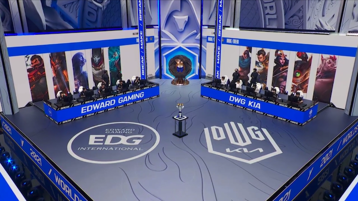 Gli EDG hanno schierato i player cinesi Li Xuan-Jun “Flandre” in corsia superiore, Zhao Li-Jie “Jiejie” in giungla e Tian Ye “Meiko” in botlane, e i due sudcoreani Lee Ye-chan “Scout” in corsia centrale (eletto MVP della serie) e Park Do-hyeon “Viper” in botlane.