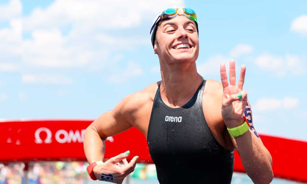 Seconda piazza per la trentunenne francese Aurélie Muller (57’53″8), evidentemente abbonata all’argento essendoselo messo al collo in quattro campionati mondiali diversi (2011, 2017, 2019, 2022), senza mai vincere un oro preso due volte nella distanza doppia a Kazan 2015 e Budapest 2017.
