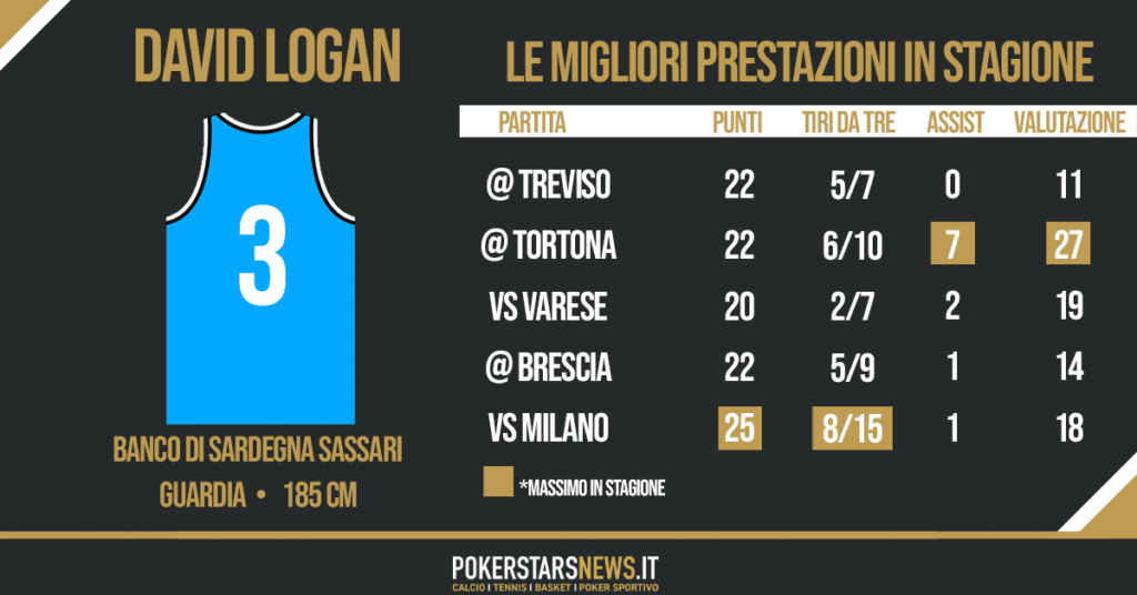 David Logan ha messo a referto il suo season-high piazzando 25 punti con una prestazione al tiro eccellente: addirittura 8/15 dall’arco!