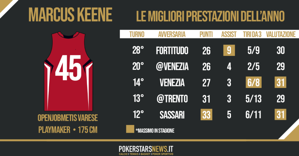 Insomma, quando Keene è in palla, per Varese sono grandi gioie.