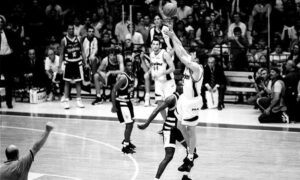 Gara 5, cronometro inesorabilmente verso lo zero e Fortitudo a +3 di vantaggio per diventare finalmente campione per la prima volta. Palla a Danilovic (sempre lui) che a 16 secondi dal termine volò in aria lanciando il pallone per il pareggio. E la palla non solo andò a canestro, ma una mano galeotta di Wilkins provocò anche il fallo aggiuntivo per il sorpasso Virtus. Poi furono i supplementari, ma la testa dei bianco blu a quel punto era spenta e le Vu Nere si aggiudicarono il titolo. Fu probabilmente il momento più emozionante della storia delle finali scudetto di tutti i tempi.