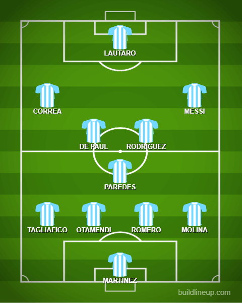 • (4-3-3) Martinez; Molina, Romero, Otamendi, Tagliafico; Paredes, De Paul, Rodriguez; Correa, Lautaro, Messi.