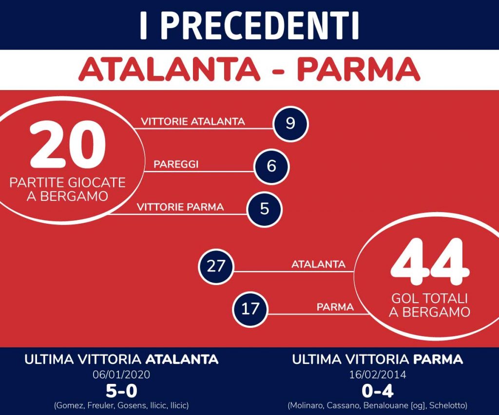 È passato un anno esatto dall’ultima trasferta bergamasca del Parma, dicevamo, ma non si tratta di un’anniversario piacevole: il 6 gennaio 2020 infatti i ducali sono usciti dal Gewiss Stadium sconfitti per 5-0: di Papu Gomez, Remo Freuler, Robin Gosens i gol che già avevano chiuso la partita nel primo tempo, prima della doppietta di Josip Ilicic nella ripresa.