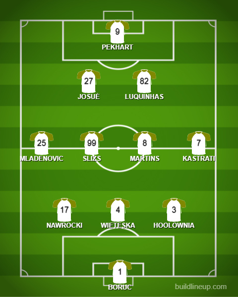 Legia Varsavia (3-4-2-1): Boruc; Nawrocki, Wieteska, Hoolownia; Kastrati, Slisz, Andre Martins, Mladenovic; Josue, Luquinhas; Pekhart.