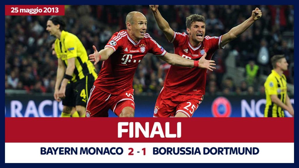 La finale del 2013 fu nel complesso molto nervosa e povera di spettacolo, fino a quando il Borussia, nell’ultimo quarto d’ora di partita, cominciò a sbandare paurosamente, soprattutto dopo l’1-1 firmato da Mandzukic e Gundogan su rigore.