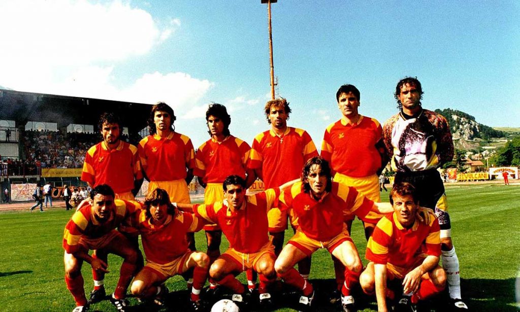 Partita memorabile, decisa da Bonomi, l’uomo simbolo della formazione giallorossa, a pochi minuti dal termine (2-1). Nello stesso pomeriggio, il Padova pareggia a tempo scaduto contro il Cosenza, e il Castel di Sangro, appeso a un miracolo, si salva per volere di Dio.