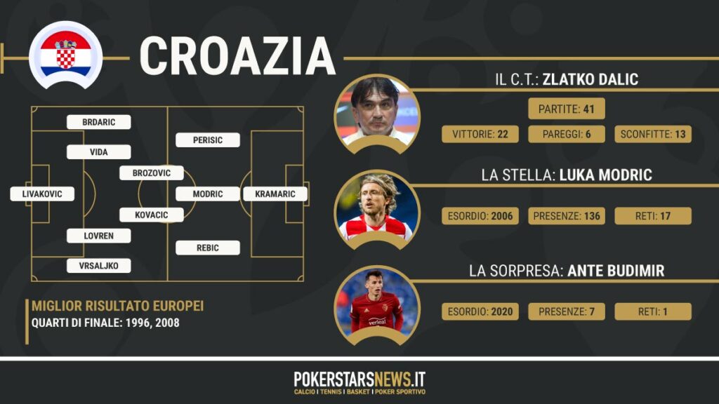 È una delle squadre favorite e il Girone “D” con Inghilterra, Scozia e Repubblica Ceca è davvero stimolante per saggiare lo smisurato talento degli uomini di Dalic.