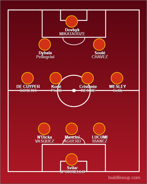Davanti, il talento non manca. Paulo Dybala è sempre il fuoco creativo, stavolta accompagnato da Soulé, sempre più titolare di questa squadra. Alle loro spalle, il centravanti sarà Dovbyk, ma attenzione a Mikautadze, talento georgiano che ha infiammato la Ligue 1. Può completare il reparto Chavez, baby prodigio svincolato dal Bayern Monaco: un talento da accudire.