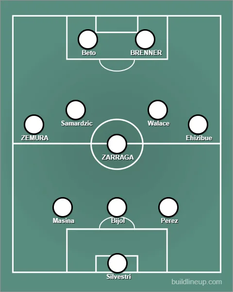 I cambi più importanti riguardano Zarraga in vantaggio su Lovren come mezzala, con Zemura che agirà sul binario di sinistra. Per la difesa, con Becao in partenza, più spazio per Bijol. In attacco, Beto appare inamovibile e in attesa del rientro di Deulofeu, sono in tre a giocarsi il posto: i neo arrivi Brenner e Lucca, con il solito Success in rampa di lancio.