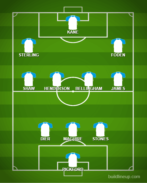 • (3-4-2-1) Pickford; Stones, Maguire, Dier; James, Bellingham, Henderson, Shaw; Foden, Sterling; Kane.