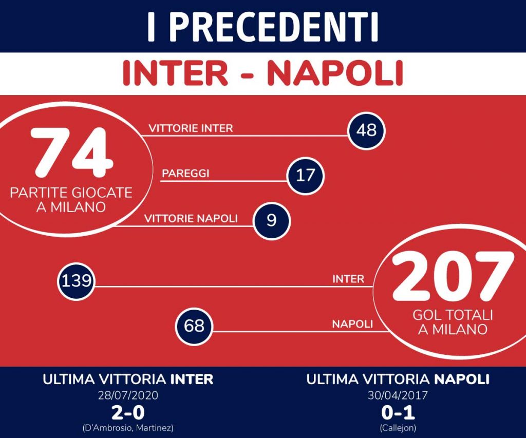 L’ultima edizione di Inter Napoli è andata in scena a luglio di quest’anno, con un 2-0 finale firmato da D’Ambrosio e Lautaro.