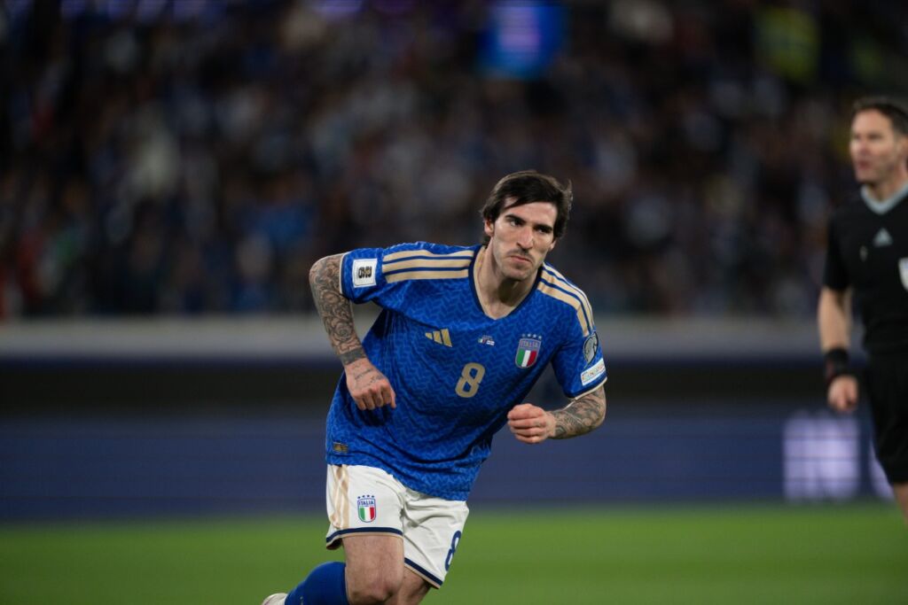 • Tonali, 8 – Sblocca la partita con un gol splendido, corre, aggredisce, crossa, tira, pressa, copre. Lui è la vera anima del centrocampo e dell’Italia. E per fortuna che i problemi fisici l’avevano messo in forse…