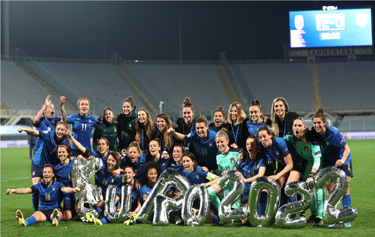 L’Italdonne ce l’ha fatta. La Nazionale femminile ha spazzato via ogni preoccupazione, andando in doppia cifra contro una squadra che, sulla carta, pareva poter opporre maggiore resistenza. La partita in pratica non c’è stata: 74% di possesso palla contro 26, 32 tiri totali di cui 20 in porta, a fronte di 3 conclusioni subite. All’Italia sarebbe bastata una vittoria con due gol di scarto, oppure con un gol di scarto dal 2-1 in su per qualificarsi matematicamente all’Europeo come una delle tre migliori seconde, ma le ragazze di Bertolini hanno voluto strafare, portandosi anche al primo posto per differenza reti nella graduatoria che le qualifica direttamente ad Inghilterra 2022 insieme a Islanda e Austria, mentre le altre sei Nazionali rimaste, Svizzera, Portogallo, Russia, Repubblica Ceca, Ucraina e Irlanda del Nord, dovranno affrontare gli spareggi per gli ultimi posti disponibili.