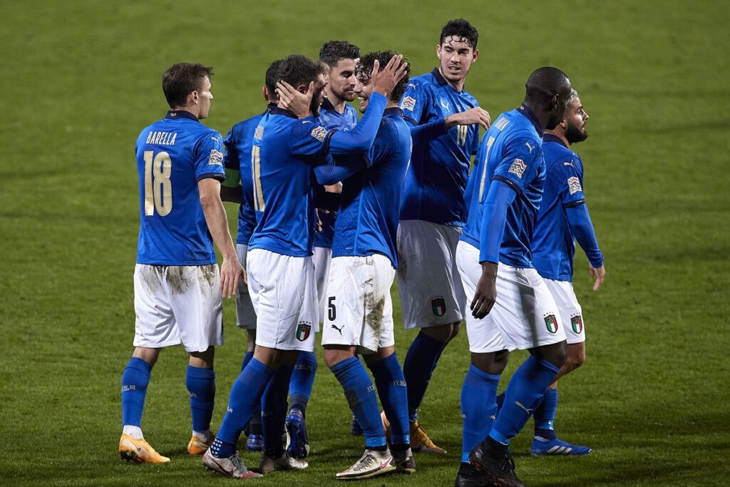 Italia prima. La Nazionale riguadagna il primo posto del girone 1 della Lega A, grazie all’ottima partita disputata oggi al Mapei Stadium di Reggio Emlia. Contro un avversario ostico come la Polonia, gli Azzurri hanno dato dimostrazione di grande forza mentale, superando tutti gli ostacoli derivanti sia dalle tante defezioni dovute al Covid e non, sia all’assenza in panchina di Roberto Mancini, anche lui colpito dal virus. È finita meritatamente 2-0, ed ora l’Italia guida con 9 punti, a una lunghezza dall’Olanda e a due proprio dai polacchi. Non è ancora detta l’ultima parola nonostante sembri tutto in discesa, la vittoria degli arancioni contro la Bosnia nel pomeriggio tiene aperta una speranza in più per gli uomini di Frank De Boer, che dovranno necessariamente battere la Polonia e sperare in un passo falso degli italiani contro i bosniaci, già ultimi in classifica e retrocessi.