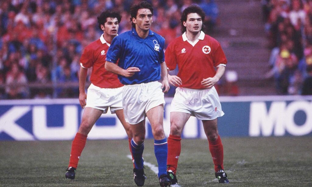 Zenga e Tacconi avevano abdicato – decisione di Sacchi – e in porta c’era finito Luca Marchegiani, ai tempi al Torino, con il famoso dualismo con Gianluca Pagliuca. In quel 14 ottobre del 1992, con la Svizzera allenata dal maestro Roy Hodgson, in porta andò l’estremo difensore dei granata. Per gli elvetici ci sono due, tre nomi da segnare: il principale è chiaramente Ciriaco Sforza, gioca al Dortmund e presto finirà nelle grinfie dell’Inter, ma nulla può tecnicamente contro quella difesa e quella nazionale.