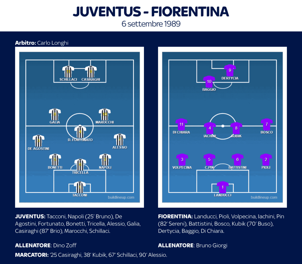 Ed è con la morte nel cuore che la Juventus vince contro la Fiorentina qualche giorno dopo (3-1, il 6 settembre dell’89). La prima rete è di Casiraghi dopo 21’.