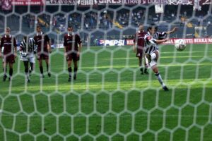Minuto 12 della ripresa. Proprio Ferrante vede e serve un gran pallone per Lucarelli che a tu-per-tu con Buffon, posizionato malissimo, lo batte con un mancino incrociato e preciso sul palo opposto. 3-1, e allora? Lucarelli carica la Maratona come avesse segnato il gol decisivo all’ultimo secondo di gioco. Non è così, ma è come se lo fosse, perché da lì in avanti il Torino surclasserà la Juventus. Passano altri 12’ e Asta, dopo uno slalom gigante, viene atterrato in area di rigore. Neanche cade che già esulta come un pazzo. È rigore netto, rigore per il Toro. Dal dischetto, Ferrante è glaciale. Due piccole corna mimate con gli indici delle due mani si affacciano sull’esultanza del 94 granata, che quasi subito però fa come per nasconderle: si rende conto, forse, che l’impresa non è ancora completata.