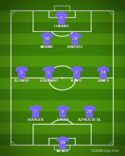 Chelsea (3-4-2-1): Mendy; Rudiger, Thiago Silva, Azpilicueta; Alonso, Jorginho, Kantè, James; Mount, Havertz; Lukaku