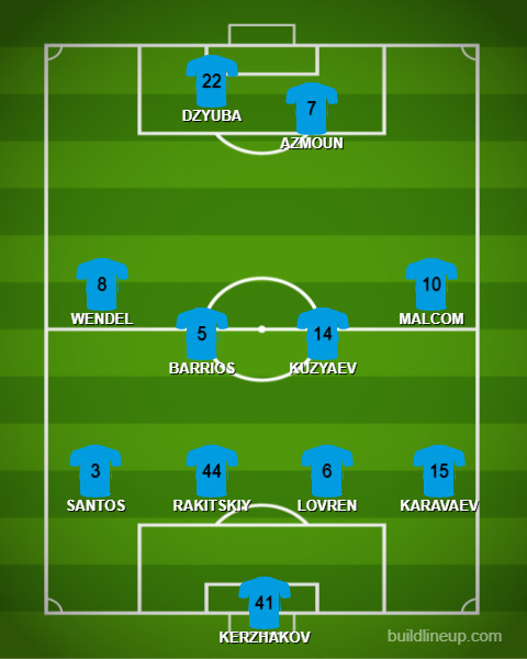 Zenit San Pietroburgo (4-4-2): Kerzhakov; Santos, Rakitskiy, Lovren, Karavaev; Wendel, Barrios, Kuzayev, Malcom; Azmoun, Dzyuba