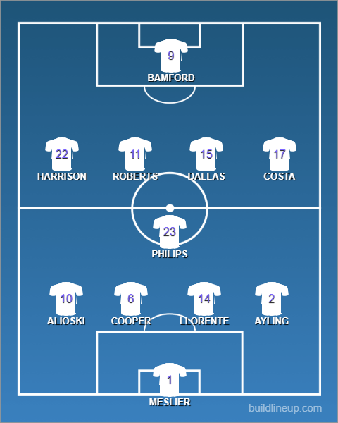 Bielsa in vista della gara di domenica dovrebbe avere tutta la rosa al completo. Gli unici dubbi riguardano le condizioni di Raphinha e Rodrigo, con Cooper che torna dalla squalifica in mezzo alla difesa. Nel 4-1-4-1 del “El Loco”, Meslier gioca in porta, mentre la difesa vede Ayling e Alioski agire sulle corsie esterne e si ricompone la coppia centrale Llorente – Cooper. L’unico mediano basso sarà come sempre Phillips. Più avanzati Costa, Dallas, Roberts ed Harrison. Unico terminale offensivo Bamford.