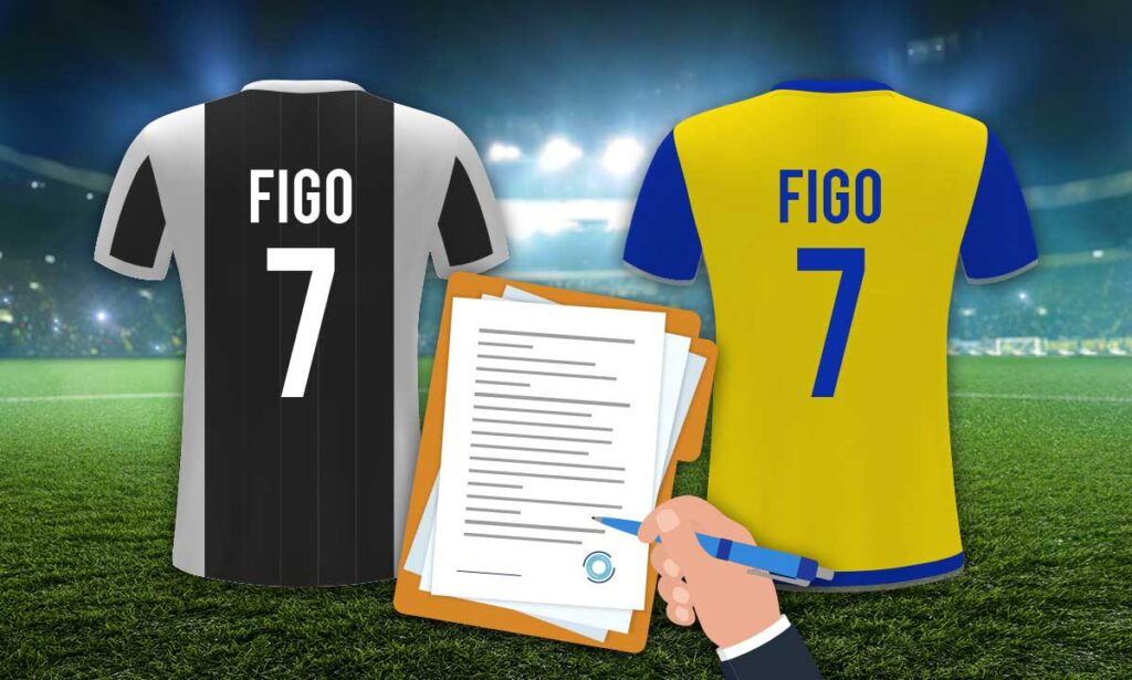 Josep María Minguella (agente di calcio e architetto dell’ingaggio di Messi e Maradona al Barcellona, tra le altre cose) racconta di aver scoperto il portoghese in una partita di Champions League tra Real Madrid e Sporting: Figo giocava come interno, e quando il club presieduto da Josep Lluís Núñez si disse interessato a ingaggiare Figo, José Veiga, agente del portoghese, gli disse che aveva già un contratto con la Juventus e un altro con il Parma. Apriti cielo.