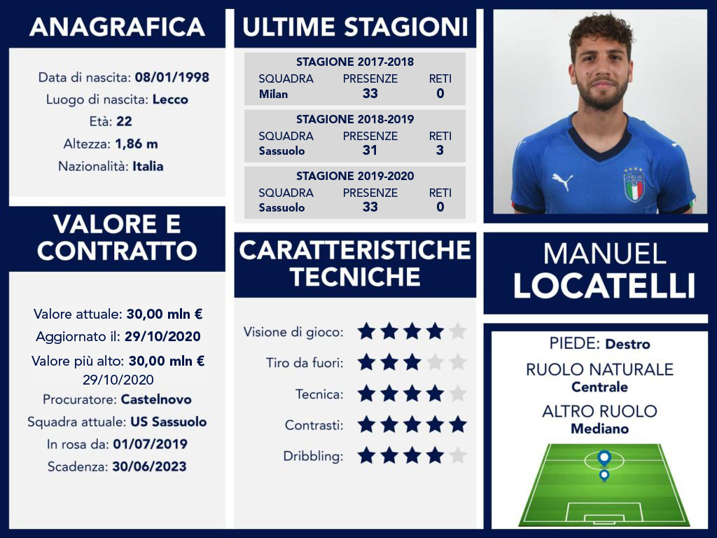 In un reparto come quello di centrocampo che sta vedendo affermarsi moltissimi talenti in Nazionale, da Pellegrini a Barella fino a Tonali, non è facile affermarsi, ma Locatelli sta dimostrando una crescita notevole, sia dal punto di vista tecnico-tattico che caratteriale, e sembra aver trovato nel Sassuolo l’ambiente perfetto per maturare e poter mantenere quelle promesse che al Milan sembravano essere state disattese.