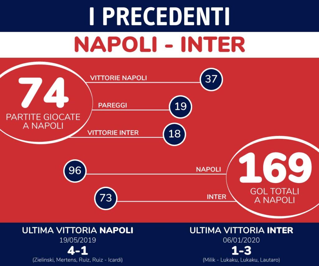 Nella scorsa stagione questa gara si è giocata a gennaio 2020, ed è terminata 1-3 con reti di Milik, doppietta di Lukaku e Martinez.