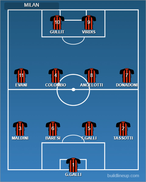 Il Milan è quello di sempre; Donadoni, Ancelotti, Baresi e Maldini, coadiuvati da uno scintillante Virdis più i due assi olandesi: tutti inseguono il sogno che ora è ad un passo, tornare campioni d’Italia dopo 9 anni. L’egemonia dei Partenopei dura da 50 partite.