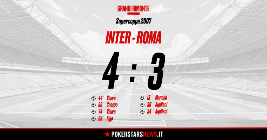 A mettere la parola fine è Luis Figo. Il portoghese, simbolo del Real Madrid e punta di diamante dell’Inter, firma il definitivo 4-3 nerazzurro al 4′ minuto del primo tempo supplementare. Nel corso dell’extra-time la Roma è inesistente, demoralizzata dal ribaltone.
