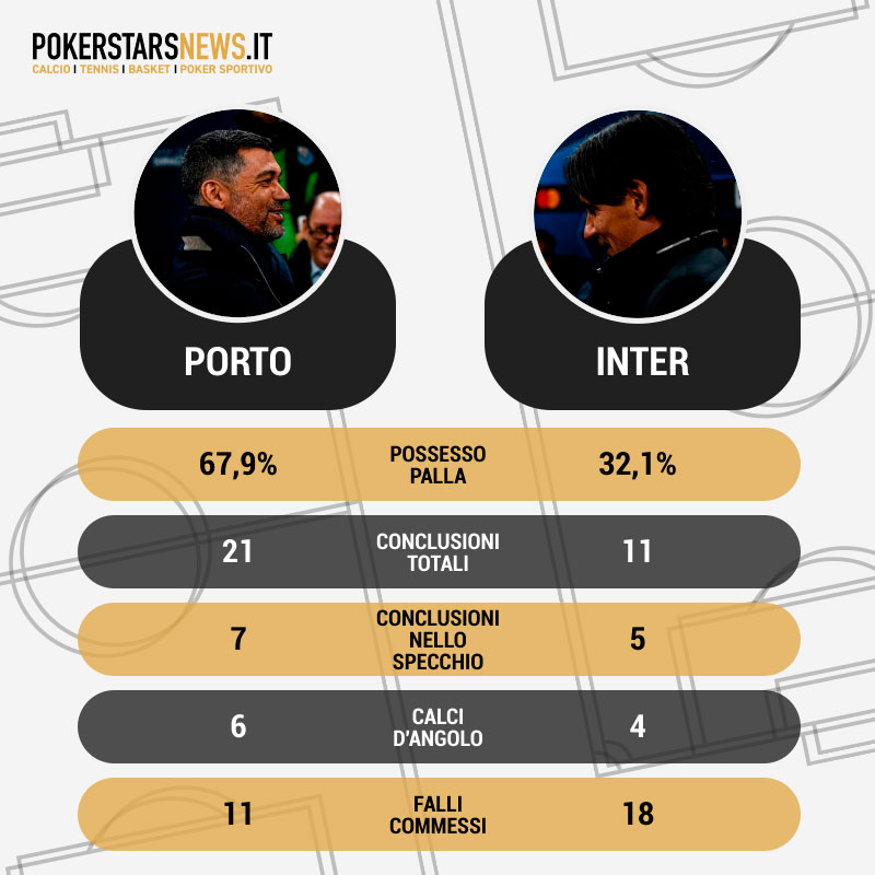 Non ci sono stati guizzi delle solite stelle della squadra, con l’Inter che in fase offensiva ha malamente sprecato le poche occasioni create (anche se in un paio di occasioni per l’intervento dell’ottimo Diogo Costa), ma la compattezza e lo spirito di gruppo sono stati encomiabili: Lautaro Martinez ha sbagliato molto in fase offensiva, ma è sempre sceso a rincorrere l’avversario fin nella sua metà campo; Calhanoglu ha rinunciato alle sue solite incursioni offensive (solo un paio di tiri fuori bersaglio) per rimanere basso ad aiutare la difesa, così come Mkhitaryan; lo stesso Lukaku che aveva deciso la gara di andata, entrato nel finale, è risultato decisivo più nello spazzare la propria area che nell’attaccare quella avversaria.