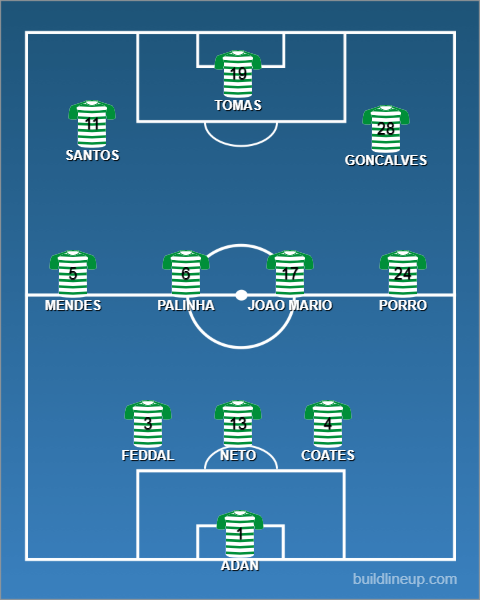 Per il resto tutti i titolari in campo: Antonio Adan in porta, Sebastian Coates, Zouhair Feddal e Neto in difesa, Pedro Porro e Nuno Mendes sulle fasce, Joao Palhinha e il rigenerato ex interista Joao Mario a centrocampo. In attacco Gonçalves e Nuno Santos in supporto di Tomas.