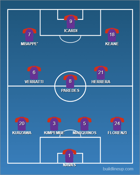 • PSG (4-3-3): Navas; Florenzi, Marquinhos, Kimpembe, Kurzawa; Herrera, Paredes, Verratti; Mbappé, Icardi, Kean.