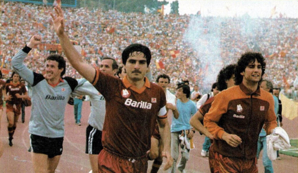 Gli anni ‘80 non sono stati avari di successo per la squadra giallorossa: 4 Coppe Italia e il secondo titolo di Campione d’Italia della storia, dopo quello vinto in tempo di guerra nel 1942. Ma per i tifosi rimane indelebile anche la delusione per la finale di Coppa dei Campioni persa nel 1984 proprio nello stadio di casa, ai rigori contro il Liverpool dopo una cavalcata esaltante, così come non si è cancellata la rabbia per lo scudetto nel 1981 perso per l’annullamento del celeberrimo gol di Turone.