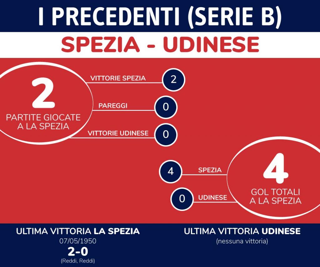 Spezia-Udinese è una sfida inedita per la Serie A, e in assoluto non va in scena in Liguria da più di 70 anni. L’ultima volta che i friulani hanno giocato a La Spezia, infatti, era il 7 maggio 1950, in Serie B, e finì 2-0 per i padroni di casa grazie ad una doppietta di Nerone Reddi.