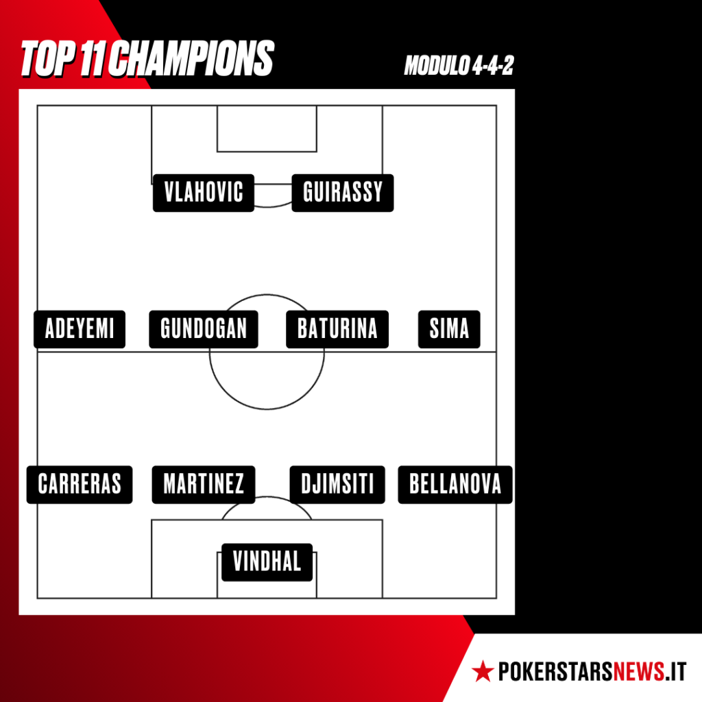 Ma quali sono i calciatori che in questo interessantissimo panorama hanno fatto meglio degli altri? È difficile tenerne fuori alcuni, ma a nostro avviso la top XI della 2a giornata di Champions dovrebbe suonare così (modulo 4-4-2): Vindahl; Bellanova, Inigo Martinez, Djimsiti, Carreras; Adeyemi, Baturina, Gundogan, Sima; Vlahovic, Guirassy.