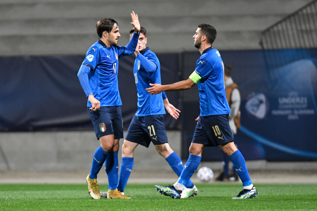 L’Italia tira fuori l’orgoglio e sfodera una prestazione quasi inappuntabile e ottiene il pass per i quarti di finale degli Europei Under 21. La compagine allenata dal CT Nicolato, nonostante le tante assenze per squalifica – indisponibili, tra gli altri, Scamacca e Tonali – liquida con un perentorio 4-0 la Slovenia padrona di casa in quel di Maribor con un primo tempo praticamente perfetto. Già al 10′, infatti, gli azzurrini passano in vantaggio: Pobega calcia e trova la respinta Vekic, poi Karic sbaglia il rinvio servendo Maggiore che batte il portiere sloveno con un bel mancino in diagonale. La Slovenia prova a reagire ma l’Italia è brava a infliggere il colpo del KO: al 19′ splendido lancio di Ranieri per Raspadori che scatta sul filo del fuorigioco e batte Vekic per il raddoppio italiano. La Slovenia subisce il contraccolpo e incassa anche il terzo gol che arriva su rigore con Cutrone che non sbaglia, dopo che l’arbitro aveva assegnato il penalty per fallo di Karic su Frattesi. La Slovenia, nel primo tempo, si vede solo una volta dalle parti di Carnesecchi ma il portiere scuola Atalanta è bravissimo sul tentativo a botta sicura di Matko. Nel finale l’Italia avrebbe la chance del 4-0 ma Cutrone, dopo essersi procurato un altro rigore, si fa ipnotizzare da Vekic.