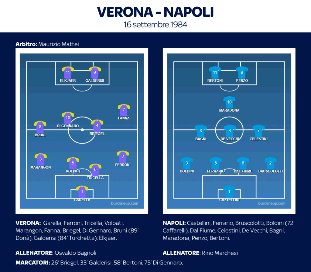 Da una parte Maradona, dall’altra il Fatal Verona.