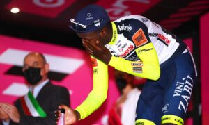“Al Giro con l’obiettivo di vincere una tappa – ha raccontato un raggiante Girmay -. Tutto il team si è messo a disposizione, persino i corridori che devono curare la classifica generale. Domenico Pozzovivo in particolare è stato splendido nel finale. Ai meno 600 metri mi ha detto di seguirlo, ha spinto al massimo e sono riuscito a vincere” ha detto, subito dopo avere tagliato il traguardo.