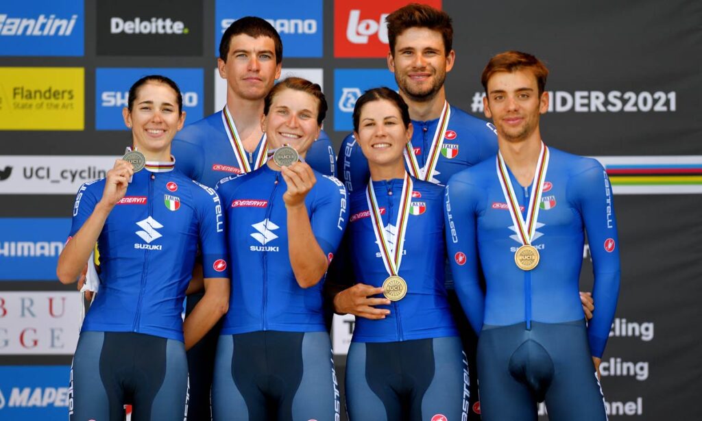 Ai recenti Europei di Trento gli azzurri erano riusciti a conquistare cinque medaglie a cronometro, proprio l’oro nella mista (con la stessa formazione eccetto De Marchi al posto di Affini), gli argenti di Ganna, beffato per otto secondi dallo svizzero Küng nella prova élite, e di Eleonora Ciabocco tra gli junior e poi la storica doppietta nelle donne élite, con l’oro di Vittoria Guazzini e il bronzo di Elena Pirrone.