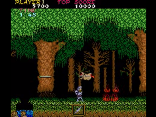 Ghosts’n Goblins (1986) – platform game d’azione sviluppato da Capcom, in cui i giocatori controllano il cavaliere Arthur impegnato a combattere contro orde di mostri per salvare la principessa. Interessante l’ambientazione fantasy-“horror”.