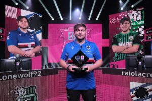 Foto di testa: Mattia “LoneWolf922 Guarracino premiato alle recenti Final Eight della eSerie A TIM di FIFA21 come Giocatore più Sportivo – Fair Play Award (courtesy of eSerie A TIM)