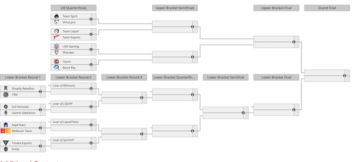 Alla fine sono uscite le 8 che iniziano l’ultima fase, quella del Main Event, direttamente dai quarti di finale del Winner Bracket. E cioè: Team Spirit, Virtus Pro, Team Liquid, Talon Esports, LGD Gaimin, 9Pandas, nouns, Azure Ray.