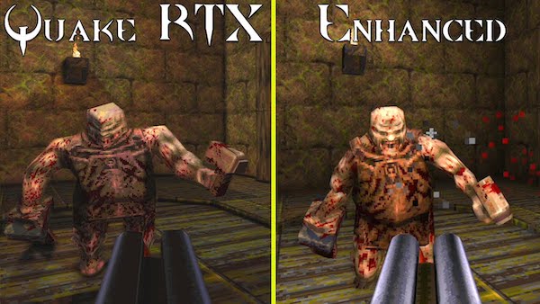 Prima di tutto, l’elemento grafico. Grazie a una risoluzione fino a 4K con supporto widescreen per piattaforme compatibili, gli elementi tridimensionali sono tutti migliorati, soprattutto i mostri. A questo va aggiunta l’illuminazione, un elemento fondamentale vista l’ambientazione da dungeon del gioco. Le ombre sono più dinamiche e l’azione nell’oscurità diventa molto più efficace. E ancora le aggiunte di anti-aliasing, lightmap colorate e ad alta risoluzione, model interpolation, motion blur fanno del nuovo Quake una versione molto più efficace dal punto di vista visivo.