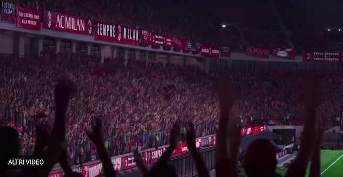 Al minuto 15:33, quando è stato trasmesso il trailer dedicato al gioco, si vede infatti il logo dell’AC Milan sugli striscioni appesi alle gradinate. Lo stadio digitalizzato è quasi certamente San Siro.