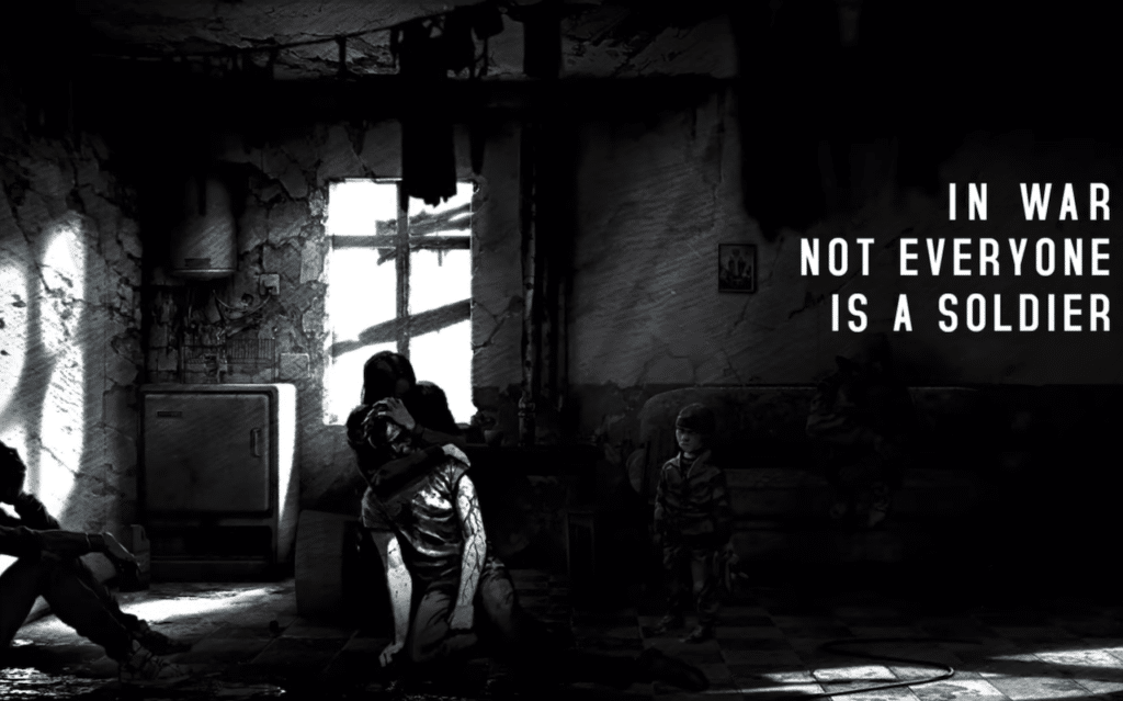 L’opera, che è ispirata all’assedio di Sarajevo (il più lungo assedio di città nella storia della guerra moderna), si differenzia dalla totalità dei videogiochi a tema bellico. In This War of Mine, infatti, i protagonisti non sono soldati o guerriglieri impegnati in prima linea, ma un gruppo di civili il cui unico obiettivo è quello di sopravvivere al conflitto.
