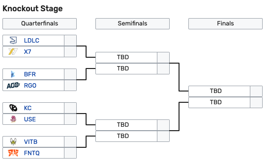 Un tabellone che parla francese, visto che ben 3 team su 8 sono transalpini. E soprattutto di alto livello, con un paio di sfide che a nostro avviso sono particolarmente interessanti: LDLC vs X7esports e Karmine vs Unicorns.