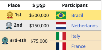 Questo è il payout riservato alle ultime 4 nazionali, i restanti 400mila dollari sono stati divisi tra tutte le altre partecipanti: