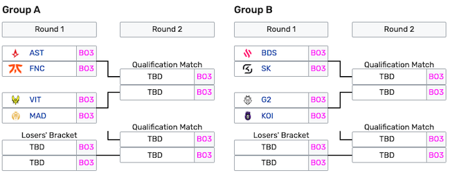 Il team BDS ha conquistato il primo posto nel Girone con 7 vittorie e 2 sconfitte. La formazione a forte componente francofona (4 giocatori su 6 sono transalpini) ha concesso punti solo ai G2 e a SK Gaming.