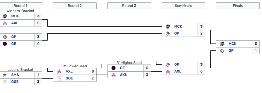 Le prime 4 hanno così dato il via al Winner Bracket, dove i Macko hanno nettamente superato Axoloti per 3-0 (sfida al meglio delle 5 partite). Stesso risultato tra Outplayed e Samsung Morning Stars, a favore dei primi. Nella finale del Winner Bracket i Macko hanno sconfitto gli Outplayed in un match molto combattuto: 3-2 conclusivo che ha obbligato gli Outplayed al recupero attraverso il Loser Bracket. Una chance che gli Outplayed hanno sfruttato al meglio, superando per 3 a 0 gli Axoloti nella finale. E così si sono ritrovati di fronte ai Macko nella sfida per il titolo.